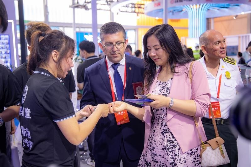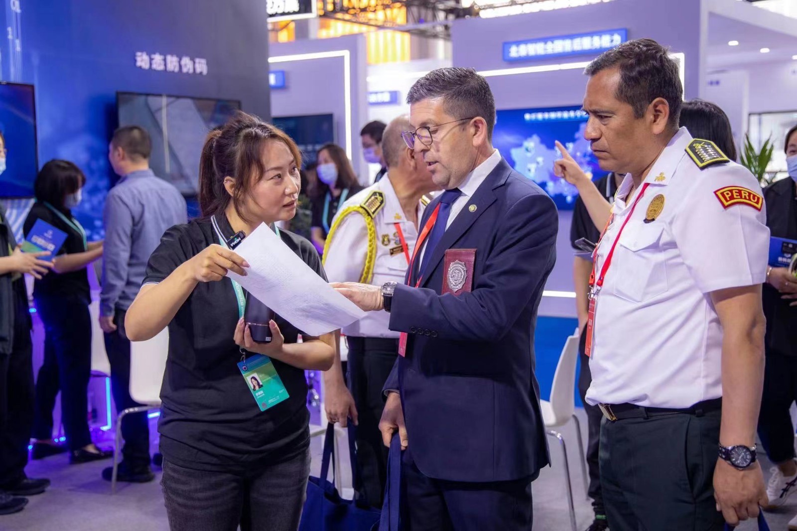 5月11日,在北京首鋼會(huì)展中心(首鋼園)舉辦的第十一屆警博會(huì)(下稱“警博會(huì)”)上,矩網(wǎng)科技有限公司帶來的智慧印章產(chǎn)品動(dòng)碼印章受到國(guó)內(nèi)外人士廣泛關(guān)注。秘魯駐華大使館警務(wù)聯(lián)絡(luò)副官米格爾·安吉爾·奎斯佩·岡薩雷斯·佐里拉上校和智利駐華大使館警務(wù)專員豪爾赫·奧格達(dá)·富恩特斯來到矩網(wǎng)科技的展位,詳細(xì)了解動(dòng)碼印章等產(chǎn)品如何應(yīng)用于護(hù)照簽發(fā)、查驗(yàn)等系統(tǒng),讓護(hù)照簽發(fā)和查驗(yàn)更高效、便捷、安全。